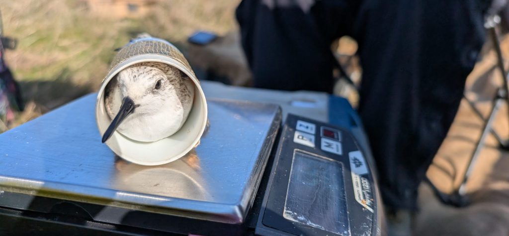 A very patient Sanderling is weighed, by Rob Robinson