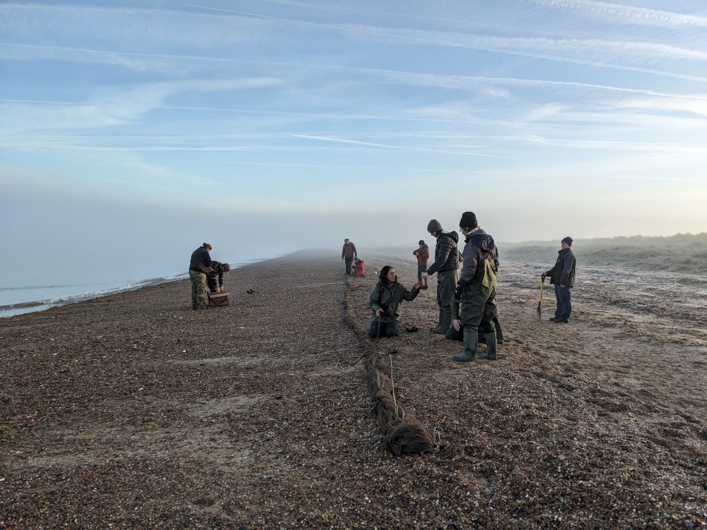 It was decided that the Heacham South Oystercatchers were the most promising option. The trailer was packed and a team set off for a night-time set of two small-mesh nets at the Tump, before quickly making it back for as much rest as the early high tide would allow.